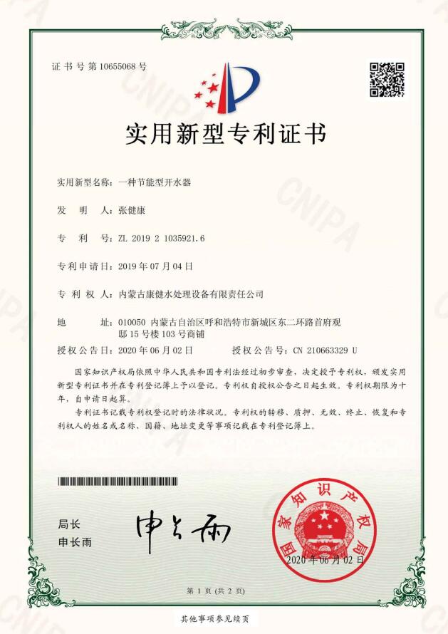 - 內(nèi)蒙古康健水處理設(shè)備有限責(zé)任公司是專業(yè)生產(chǎn)制造水處理設(shè)備、飲料設(shè)備、奶設(shè)備、殺菌設(shè)備、灌裝設(shè)備五大系列90余種配套產(chǎn)品。在反滲透、超濾、納濾、EDI模塊、等膜分離領(lǐng)域有著雄厚的技術(shù)實(shí)力,同時(shí)在水廠設(shè)計(jì)、中水回用、污水處理、分質(zhì)供水、無負(fù)壓變頻供水、鍋爐軟化水設(shè)備等領(lǐng)域有完善的技術(shù)團(tuán)隊(duì)和營(yíng)銷網(wǎng)絡(luò)。公司坐落在遼闊大草原上美麗的首府——呼和浩特,是內(nèi)蒙古自治區(qū)唯一一家具有自主生產(chǎn)能力的企業(yè)。 “上善若水,水利萬物而不爭(zhēng)”康健水工自成立以來,始終堅(jiān)持“改善水質(zhì)、造福人類、服務(wù)社會(huì)、產(chǎn)業(yè)報(bào)國(guó)”的企業(yè)信條,以致力于開創(chuàng)人類綠色健康生活為己任,秉承“關(guān)愛生命、責(zé)任至上”的企業(yè)宗旨,成就了享譽(yù)四方的國(guó)內(nèi)知名水處理企業(yè)。 水是生命的源泉、工業(yè)的血液、城市的命脈。水是不可替代的寶貴資源。節(jié)約用水,關(guān)注點(diǎn)滴 為節(jié)約水資源貢獻(xiàn)一份力量, 健康飲水,利在當(dāng)代,功在千秋! 只有在這里,才能領(lǐng)會(huì)水的精髓;只有在這里,才...
